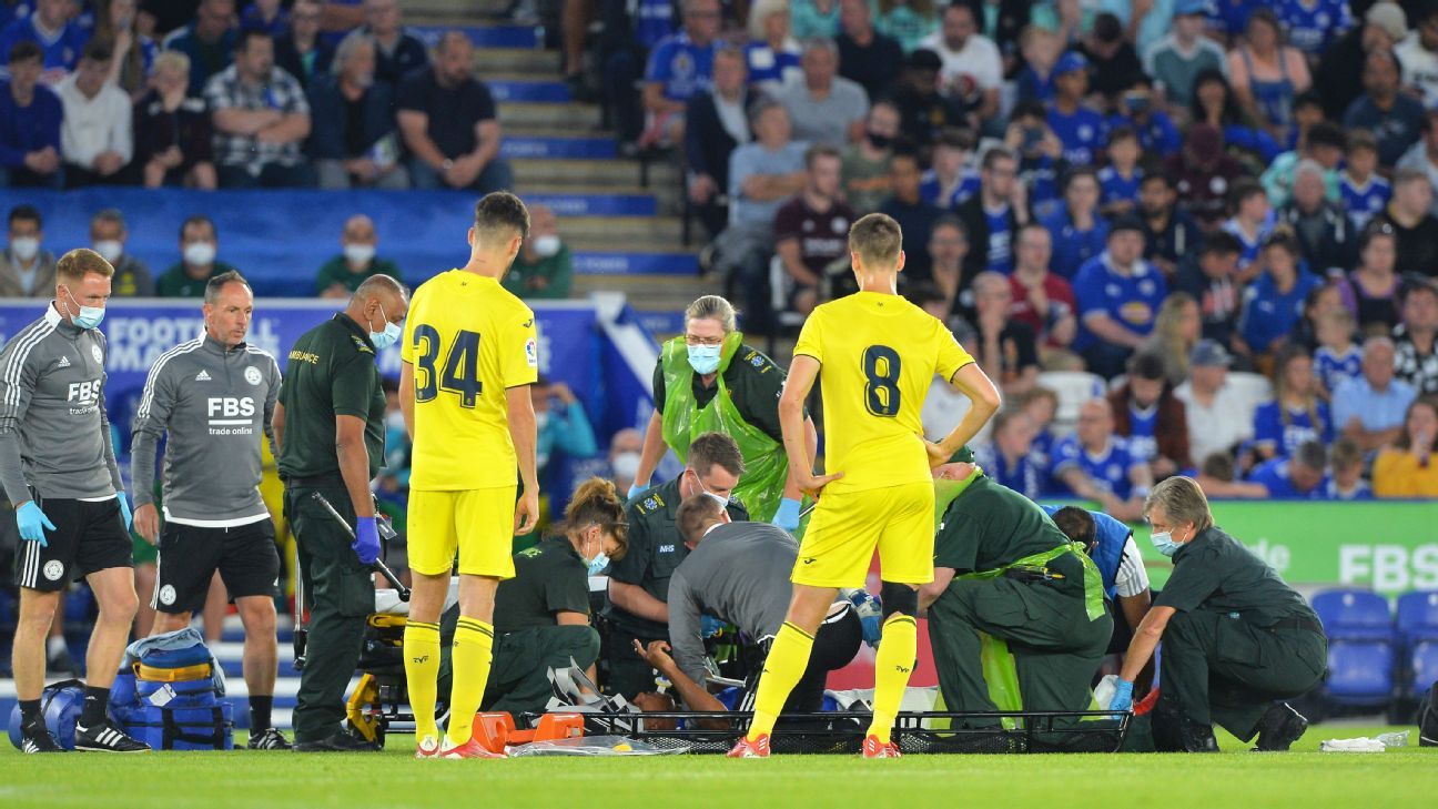 Leicester's wesley fofana was stretchered off with what appeared to be a serious leg injury during a preseason game against villarreal.